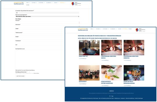 Entwicklung und Umsetzung eines Reservierung-Tools für die Angebote des Evangelischen Familienzentrums in Bernhausen. individuell auf die verschiedenen Angebote zugeschnitten mit automatischem Mail-Versand einer Eingangsbestätigung, Limitierung bei Erreichen der maximaler Teilnehmerzahl und Stornierungsfunktion. Selbstverständlich responsiv (automatischer Anpassung für PC/Smartphone) und nach datenschutztechnischen gesetzlichen Vorgaben, wie beispielsweise der automatischen systemseitigen Löschung der Kundendaten nach Ablauf der festgelegten Frist.