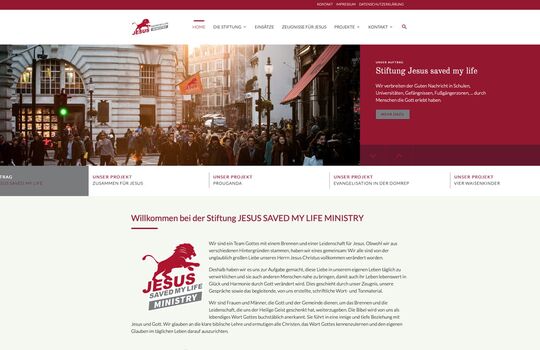 Neugestaltung der Homepage der Stiftung Jesus saved my Life mit dynamischer Startseite mit täglich automatisch neu angeordneter Media-Elemente, datenschutzkonformer YouTube-Einbindung und Online-Banking-Spendenmöglichkeit. Selbstverständlich responsiv (automatischer Anpassung für PC/Smartphone) und nach datenschutztechnischen gesetzlichen Vorgaben sowie Cookie-Consent-Banner.