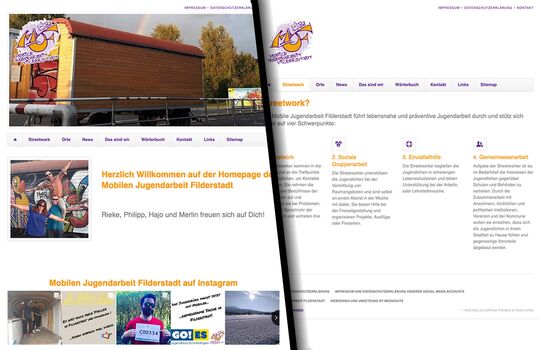 Online-Präsenz der Mobilen Jugendarbeit in Filderstadt mit Social Media Feed für Instagram und Facebook. Selbstverständlich responsiv (automatischer Anpassung für PC/Smartphone) und nach datenschutztechnischen gesetzlichen Vorgaben sowie Cookie-Consent-Banner.